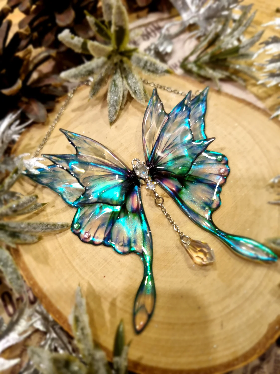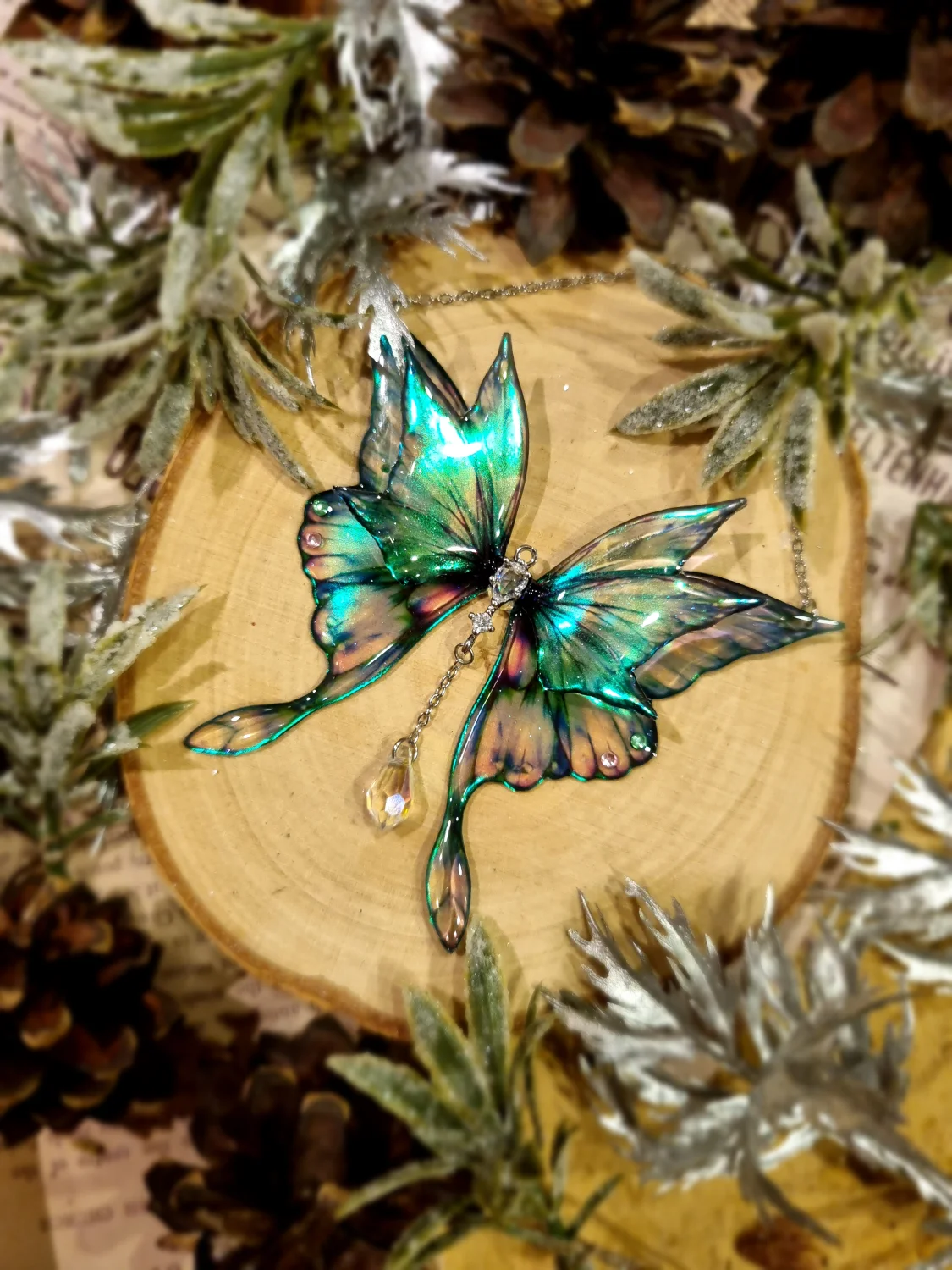 W głębi zaczarowanego lasu, tam gdzie światło księżyca splata się z magią wróżek, narodziła się Faelwen. Jej skrzydła mienią się barwami dawnych zaklęć, a każdy ich blask chroni noszącą osobę przed złymi snami i przypomina o wewnętrznej sile. Mówi się, że naszyjnik ten nosi w sobie cząstkę magii wróżek – delikatnej, lecz potężnej jak samo marzenie.