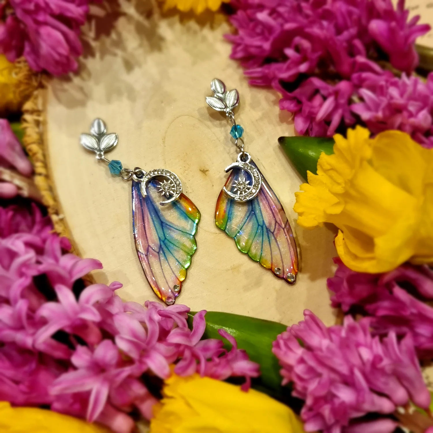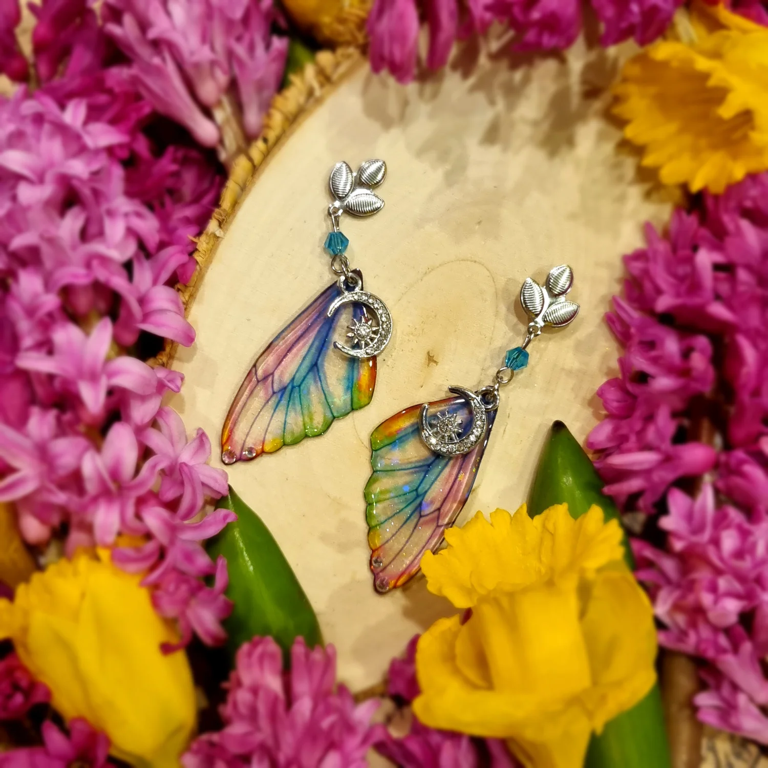 Kolczyki serafina nocy tęczowe z holograficznymi gwiazdkami